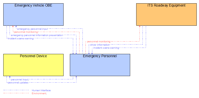 'Emergency Personnel' represents personnel that are responsible for police, fire, emergency medical services, towing, service patrols, and other special response team (e.g., hazardous material clean-up) activities at an incident site. These personnel are associated with the Emergency Vehicle during dispatch to the incident site, but often work independently of the Emergency Vehicle while providing their incident response services.